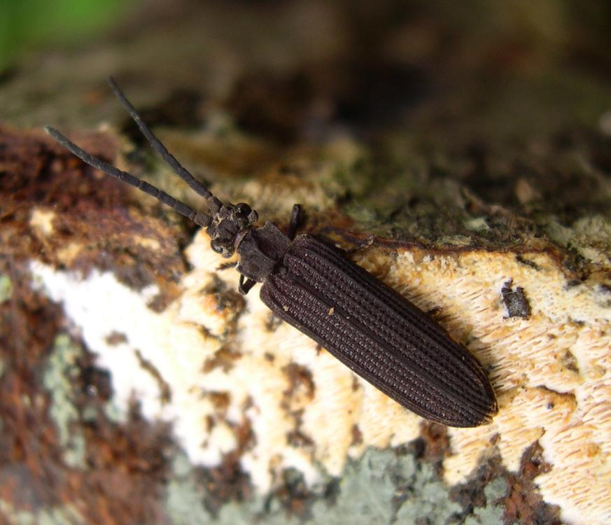 Un cupédido, familia Cupedidae, un grupo de coleópteros primitivos del suborden Archostemata https://commons.wikimedia.org/wiki/File:Tenomerga_mucida01.jpg