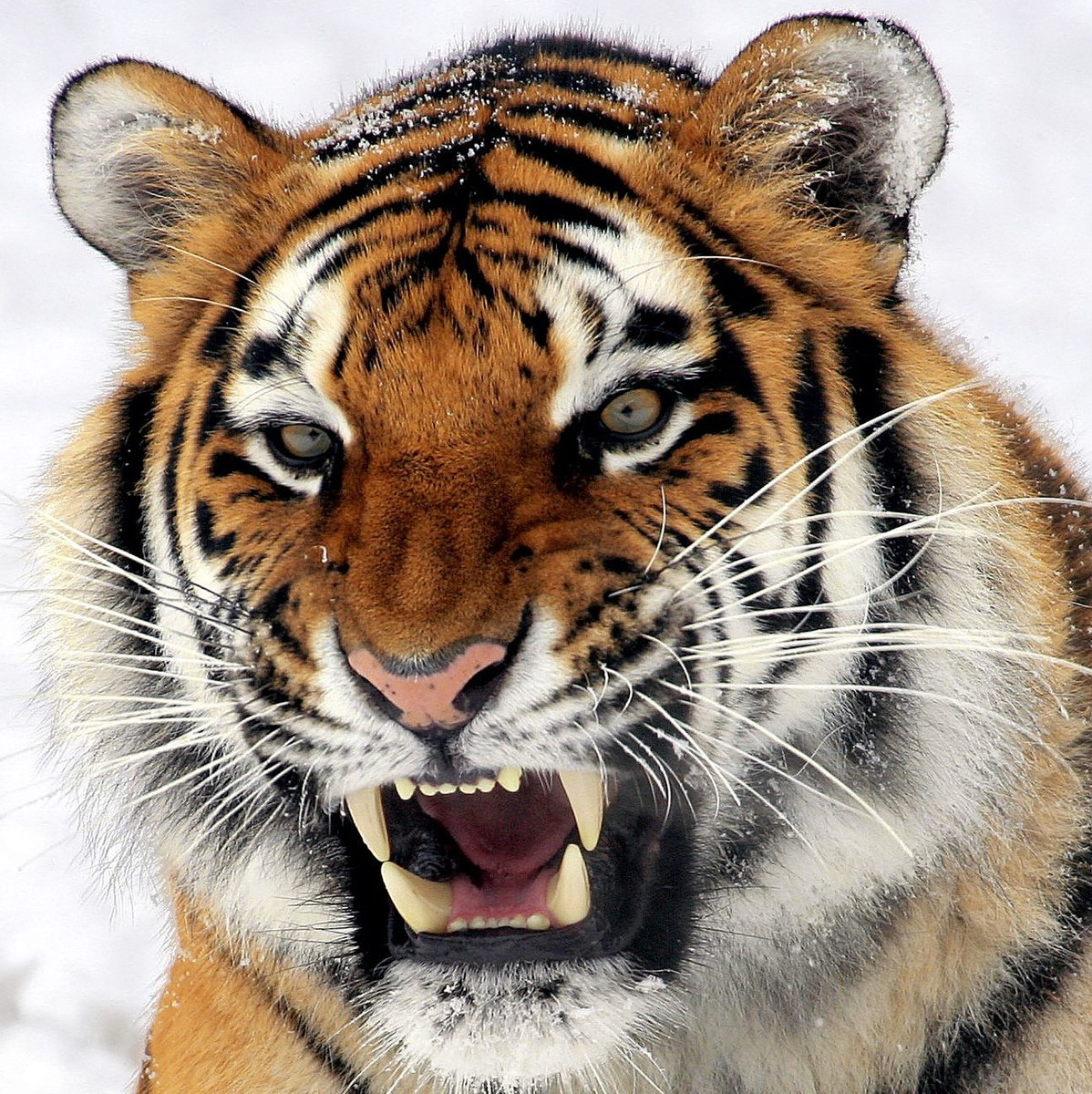 Tigre blanco mostrando sus colmillos como muestra de agresión. Autor: Dave Pape. https://commons.wikimedia.org/wiki/File:Panthera_tigris_altaica_28_-Buffalo_Zoo(1).jpg
