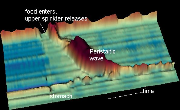 1- Peristalsis es un sustantivo que se refiere a ondas o contracciones y relajaciones musculares involuntarias y progresivas, que suceden a lo largo de las paredes de una estructura anatómica hueca, como el esófago y el intestino, y que fuerza o hace avanzar el contenido del canal digestivo hasta el ano para su eliminación. También existe peristalsis en los uréteres que conducen la orina desde los riñones hasta la vejiga urinaria y en las trompas de Falopio u oviductos, que permiten el paso de los ovocitos desde el ovario, y en su caso, su fertilización al unirse con el espermatozoide.